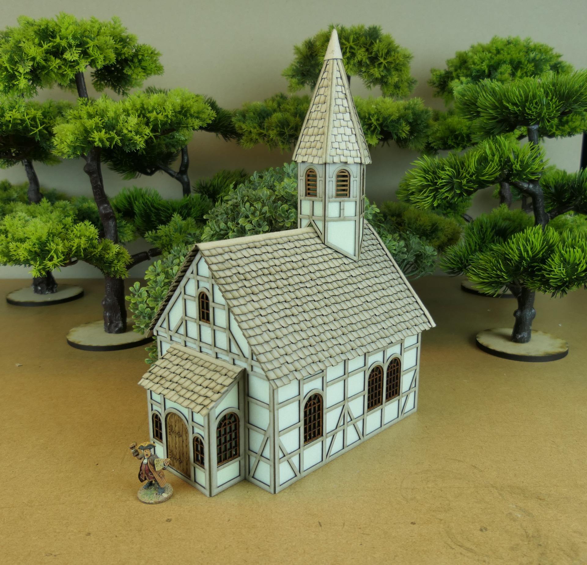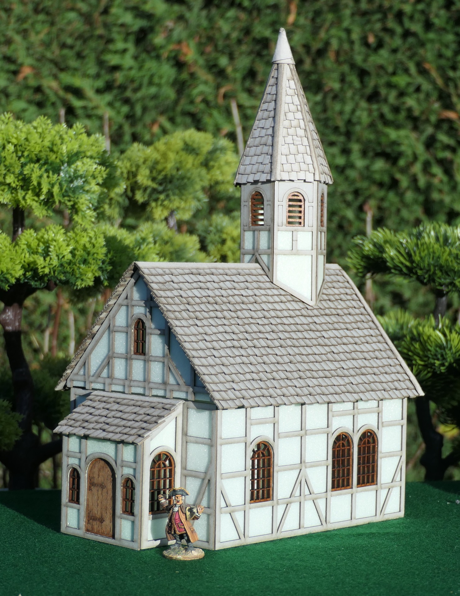 La aguja viene como una pieza independiente y puede colocarse en cualquier parte del tejado. Además, es una excelente pieza central para tu aldea. La Capilla viene precortada, lo que significa que es una estructura abierta y apilable.